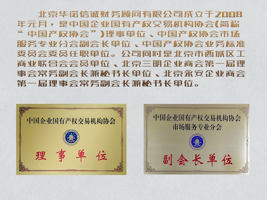 北京華諾信誠(chéng)財(cái)務(wù)顧問(wèn)有限公司創(chuàng)立于2008年元月,是一家專注國(guó)資交易、國(guó)企混改、并購(gòu)重組和產(chǎn)權(quán)經(jīng)紀(jì)服務(wù)的精品投資銀行機(jī)構(gòu),提供非標(biāo)準(zhǔn)化資產(chǎn)和權(quán)益流轉(zhuǎn)及盤活的“撮合”和“咨詢”服務(wù)。公司目前是中國(guó)企業(yè)國(guó)有產(chǎn)權(quán)交易機(jī)構(gòu)協(xié)會(huì)理事單位、市場(chǎng)服務(wù)專業(yè)分會(huì)副會(huì)長(zhǎng)兼秘書(shū)長(zhǎng)單位、北京市西城區(qū)工商業(yè)聯(lián)合會(huì)(商會(huì))會(huì)員單位,北京、上海、重慶、山東、天津等地產(chǎn)權(quán)交易機(jī)構(gòu)會(huì)員機(jī)構(gòu)。