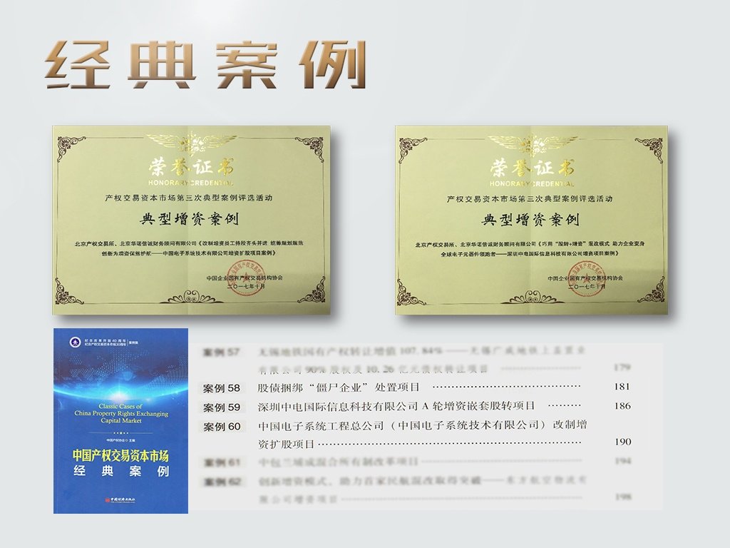 “一諾千金、品質(zhì)交付”,成果贏得客戶認(rèn)可,品牌獲取社會(huì)信任。截至2020年底,公司已精準(zhǔn)對(duì)接服務(wù)14個(gè)部委機(jī)構(gòu)、46家央企集團(tuán),15家在京國(guó)企集團(tuán),以及部分境內(nèi)外知名企業(yè)項(xiàng)目,已零失誤完成1500余項(xiàng)各類國(guó)資交易并購(gòu)重組項(xiàng)目服務(wù)。公司所服務(wù)的2個(gè)項(xiàng)目榮獲中國(guó)產(chǎn)權(quán)協(xié)會(huì)“產(chǎn)權(quán)交易資本市場(chǎng)典型增資案例”,3個(gè)項(xiàng)目入編《中國(guó)產(chǎn)權(quán)交易資本市場(chǎng)經(jīng)典案例》一書(shū)。公司是唯一一家成立至今連續(xù)13年獲得北京產(chǎn)權(quán)交易所“十佳會(huì)員”機(jī)構(gòu),是北京產(chǎn)權(quán)交易所“全要素綜合服務(wù)獎(jiǎng)”、上海聯(lián)合產(chǎn)權(quán)交易所“市場(chǎng)開(kāi)拓獎(jiǎng)”、“優(yōu)秀案例獎(jiǎng)”、“服務(wù)央企業(yè)務(wù)能力20強(qiáng)”,天津產(chǎn)權(quán)交易中心“最佳競(jìng)價(jià)獎(jiǎng)”等若干產(chǎn)權(quán)交易所獎(jiǎng)項(xiàng)會(huì)員機(jī)構(gòu)。