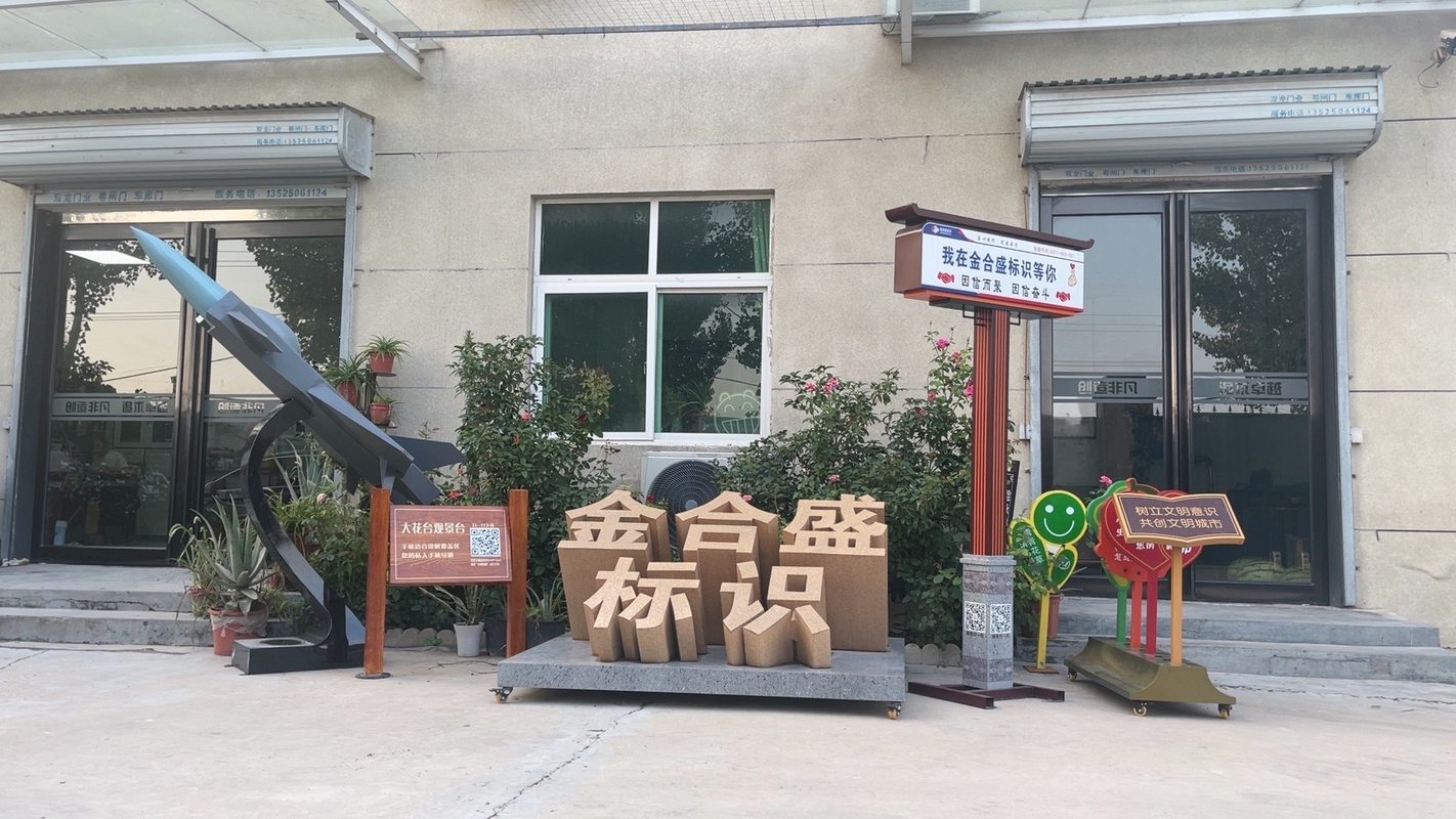 金合盛標(biāo)牌擁有自己的生產(chǎn)研發(fā)實體,擁有一流的生產(chǎn)廠家和制作隊伍,集項目研究、設(shè)計、生產(chǎn)加工、成品組裝、物流運輸及售后維護為一站式的專業(yè)配套服務(wù),同時每個環(huán)節(jié)配備頂級專業(yè)人士,確保以正確的研究方向、高品質(zhì)的設(shè)計、優(yōu)質(zhì)的原料、精湛的工藝、專業(yè)的生產(chǎn)技術(shù)及細(xì)致的售后服務(wù)而實現(xiàn)精致的藝術(shù)作品。公司還不斷引進完整科學(xué)的管理體系,現(xiàn)已通過ISO9001:2008質(zhì)量管理體系認(rèn)證, 主導(dǎo)產(chǎn)品均通過CE認(rèn)證。 專業(yè)品質(zhì)、精心制造、誠信經(jīng)營、用心服務(wù)。放眼未來,大唐標(biāo)識廣告正朝著專業(yè)化、現(xiàn)代化的企業(yè)目標(biāo)邁進,公司將以嚴(yán)格的管理,先進的技術(shù),可靠的力量,全方位的服務(wù),真誠服務(wù)全國各地每一個客戶。