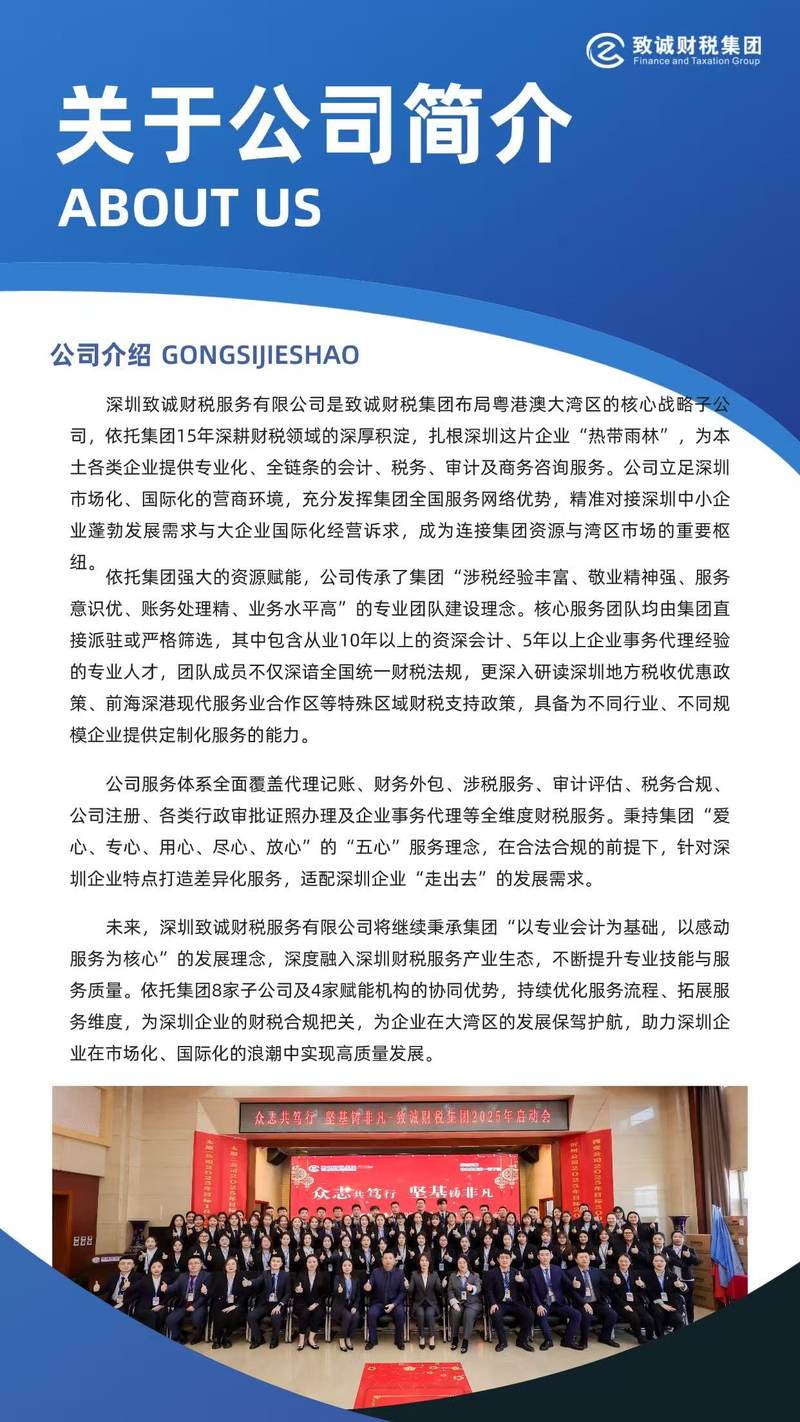 作為集團(tuán)布局華南的節(jié)點(diǎn),深圳致誠(chéng)延續(xù)專(zhuān)業(yè)基因,通過(guò)標(biāo)準(zhǔn)化流程與定制化方案滿足中小企業(yè)需求,致力于成為區(qū)域企業(yè)合規(guī)經(jīng)營(yíng)的伙伴。
